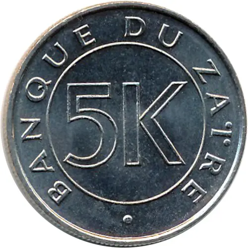 | Reverse description | `5K` in a circle `BANQUE DU ZAÏRE around the circle Dot below circle |