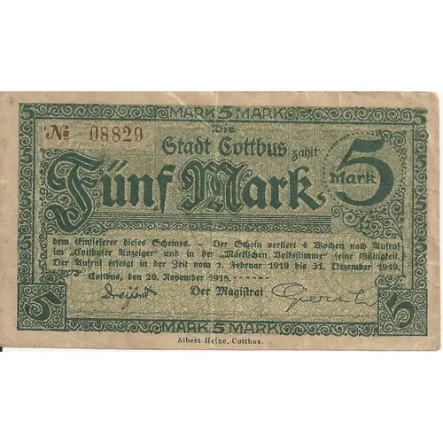 | Issuer | Cottbus (notgeld), City of |