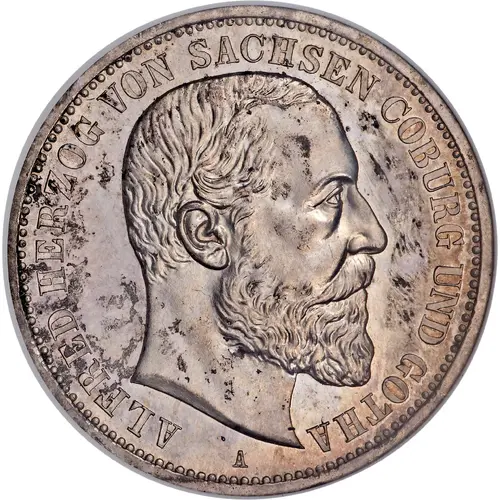 | Obverse lettering | ALFRED HERZOG VON SACHSEN COBURG UND GOTHA A |