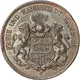 Obverse description Helmeted arms with lion supporters