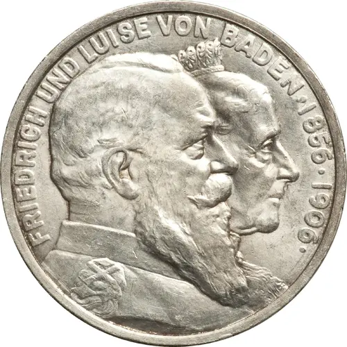 | Obverse lettering | FRIEDRICH UND LUISE VON BADEN·1856·1906· |