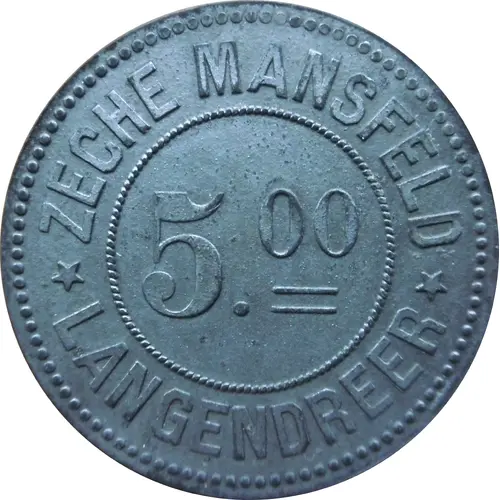 | Obverse lettering | ZECHE MANSFELD ★ 5.°° ★ LANGENDREER |