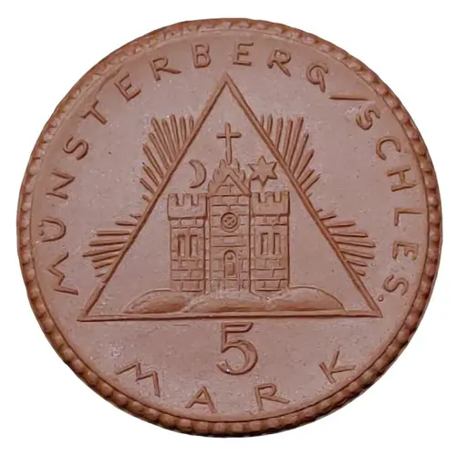 MÜNSTERBERG/SCHLES 5 MARK (Translation: MUNSTERBERG / SILESIA) |