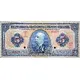 | Opis awersu | Blue on polychrome, in calcography and lithography. In the center, an oval medallion with portrait of José Maria da Silva Paranhos Júnior, Barão do Rio Branco (1819-1880), flanked by the nominal value 5. Diagonally crossing the body of the note, anonymous autograph of the official responsible for the conference. |