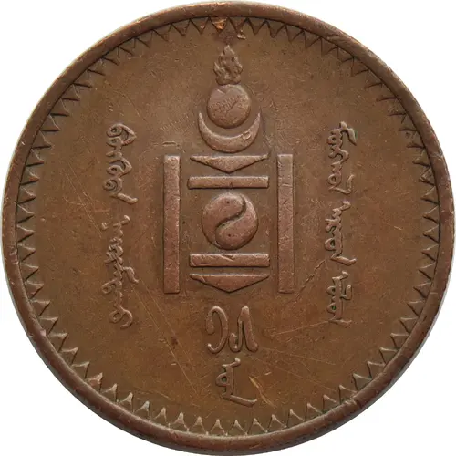 | Obverse description | Soyombo symbol and lettering, date below. Soyombo of the People`s Republic of Mongolia (1924-1939). |