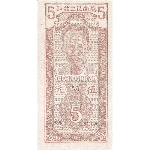 | Obverse lettering | VIET-NAM DAN-CHU CONG-HOA GIAYNAM DONG 5 |