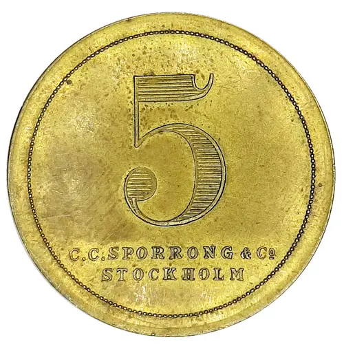 | Obverse lettering | 5 C.C. SPORRONG & CO. STOCKHOLM |