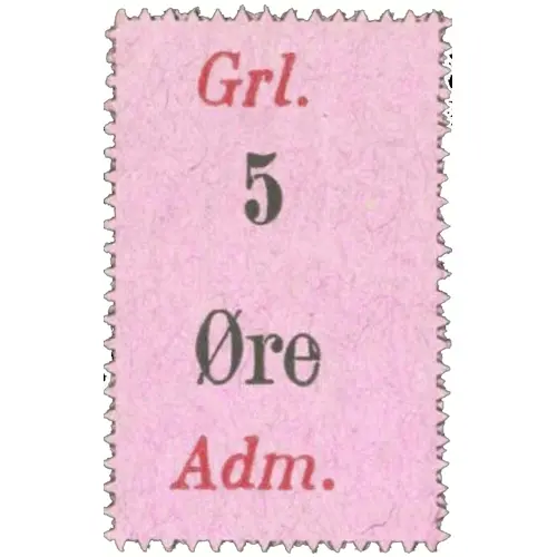 | Obverse lettering | Grl. 5 Øre Adm. (Translation: Greenlandic 5 Øre Administration) |