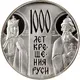 | Reverse lettering | 1000 ЛЕТ КРЕ- ЩЕ- НИЯ РУСИ СВ КН ОЛЬГА СВ КН ВЛАДИМИР 5 OZ 999 ЛМД (Translation: 1000th anniversary of the baptism of Rus St. Princess Olga St. Prince Vladimir LMD) |