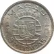 | Reverse description | Arms of Portuguese Macau over crowned globe flanked by stars, denomination below |