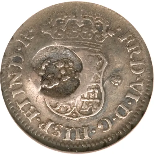 | Obverse lettering | • FR • VI • D • G • HISP • E • IND • R • GR (Translation: Ferdinand VI by the Grace of God, king of Spain and the Indies. King George.) |