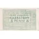 | Reverse lettering | EESTI VABARIIGI KASSATÄHT 5 PENNI 5 |