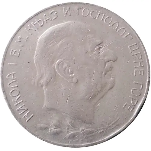КЊАЖЕВИНА ЦРНА ГОРА 5 ПЕРПЕРA 1909 (Translation: Principality of Montenegro 5 Perpera) |