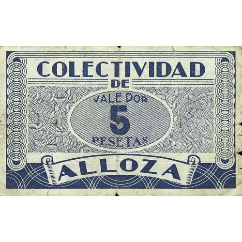 COLECTIVIDAD DE ALLOZA VALE POR 5 PESETAS (Translation: Collectivity of Alloza Voucher for 5 Pesetas) |