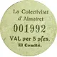 | Obverse lettering | La Colectivitat d`Almatret 001992 VAL per 5 ptes. El Comité. (Translation: The Collectivity of Almatret Voucher for 5 Pesetas. The Committee.) |