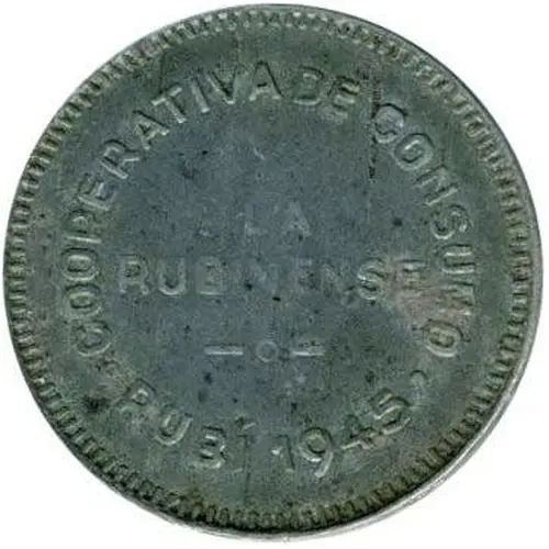 | Obverse lettering | COOPERATIVA DE CONSUMO LA RUBINENSE · RUBÍ 1945 · (Translation: La Rubinense Consumer Cooperative) |