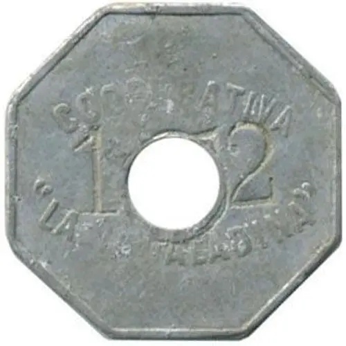 | Obverse description | Legend in two lines. In the center, 7 mm round hole. On both sides of the hole an incuse number |