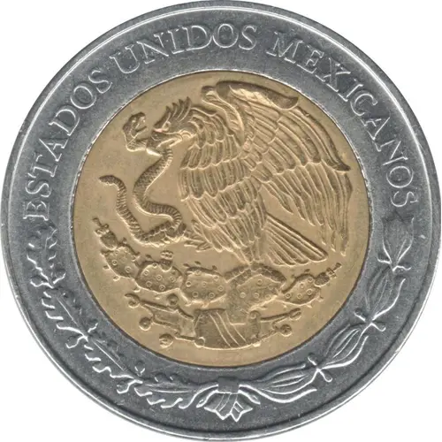 | Beschrijving voorzijde | In the center, the National Shield (Mexican Golden Eagle perched on a prickly pear cactus devouring a snake) in sculpted relief. |