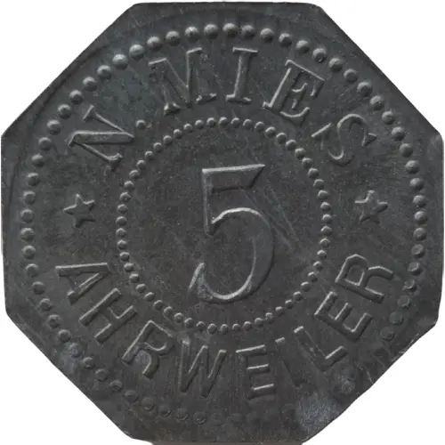 | Obverse lettering | N. MIES 5 ★ ARHWEILER ★ |