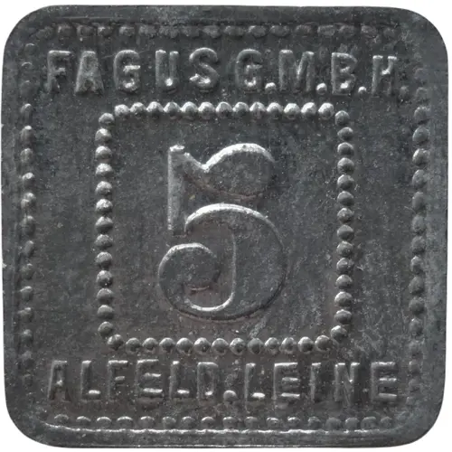 | Legenda awersu | FAGUS G.M.B.H. 5 ALFELD. LEINE |