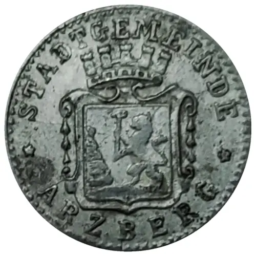 | Aversbeschreibung | Beaded rim, city name divided above and below by Coat of Arms centered |