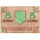 | Reverse lettering | 5 PFENNIG 5 PFENNIG GÜLTIG BIS ZUM AUFRUF DURCH DIE BAD. STAATSSCHULDENVERWALTUNG. FÄLSCHUNG WIRD STRAFGERICHTLICH VERFOLGT. (Translation: VALID UNTIL CALLED BY THE BADEN STATE DEBT MANAGEMENT. COUNTERFEITING WILL BE PROSECUTED IN CRIMINAL COURT.) |