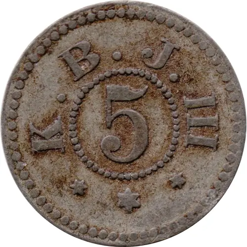 | Obverse description | Number 5 in dotted circle surrounded by initials |