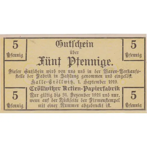 | Value | 5 Pfennigs (5 Pfennige) (0.05) |
