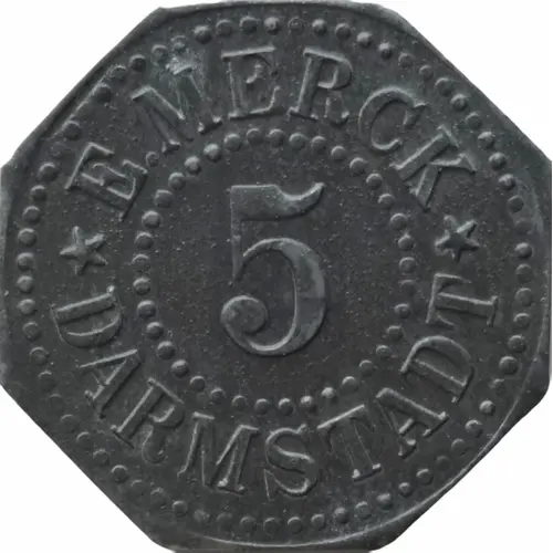 | Obverse lettering | E. MERCK 5 ★ DARMSTADT ★ |
