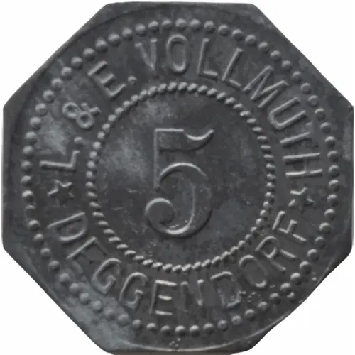 | Obverse lettering | L. & E. VOLLMUTH 5 ★ DEGGENDORF ★ |