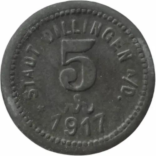 | Obverse lettering | STADT DILLINGEN A/D. 5 ✶ 1917 ✶ |