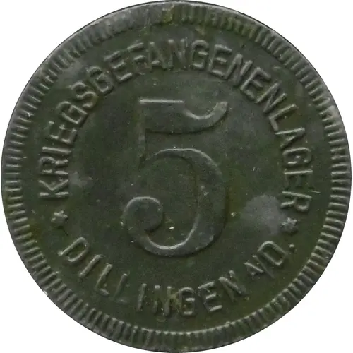 | Obverse lettering | KRIEGSGEFANGENENLAGER 5 ✶ DILLINGEN a/D. ✶ |