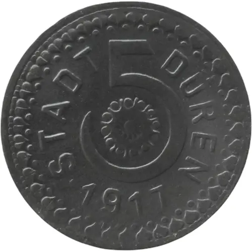 | Obverse lettering | STADT 5 DÜREN • 1917 • |