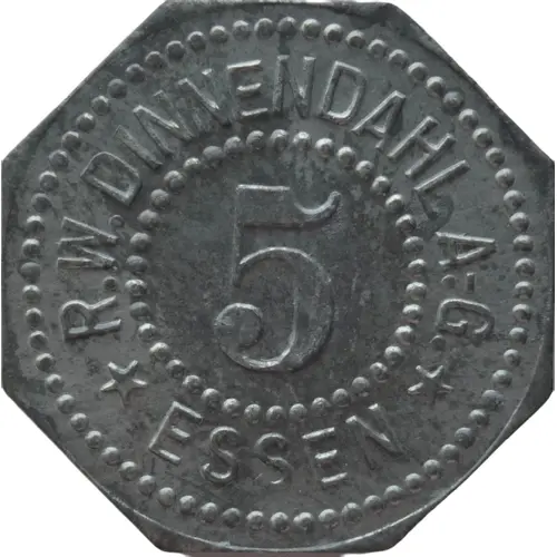 | Obverse lettering | R.W. DINNENDAHL A.-G. 5 ★ ESSEN ★ |