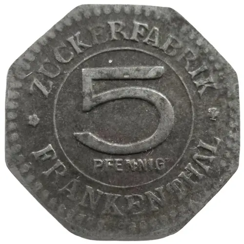| Obverse lettering | ZUCKERFABRIK 5 PFENNIG ✿ FRANKENTHAL ✿ |