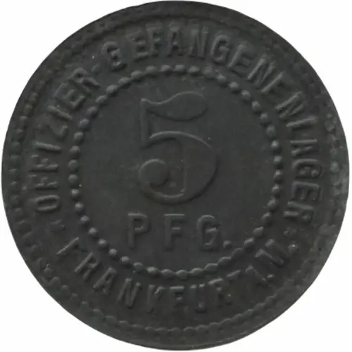 | Obverse lettering | OFFIZIER-GEFANGENENLAGER 5 PFG. ★ FRANKFURT a. M. ★ |