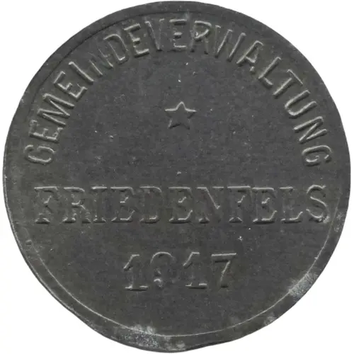 | Obverse lettering | GEMEINDEVERWALTUNG ✶ FRIEDENFELS 1917 |