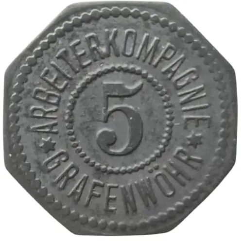 | Obverse lettering | ARBEITERKOMPAGNIE 5 ✶ GRAFENWÖHR ✶ |