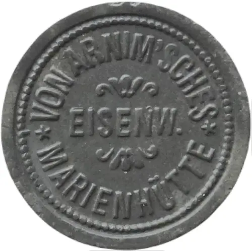| Opschrift voorzijde | VON ARNIM`SCHES EISENW. ★ MARIENHÜTTE ★ |