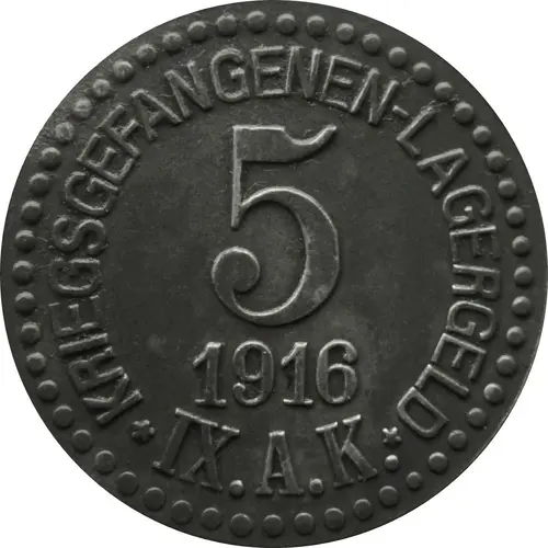 Ön yüz lejandı KRIEGSGEFANGENEN-LAGERFELD 5 1916 ★ IX.A.K. ★