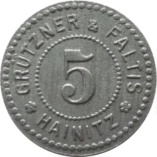 | Obverse lettering | GRÜTZNER & FALTIS 5 HAINITZ |