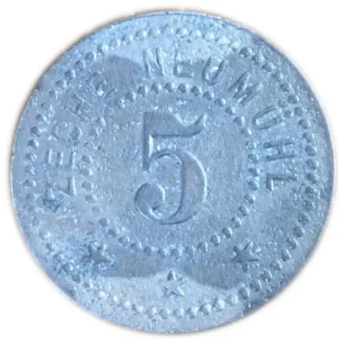 | Obverse lettering | ZECHE NEUMÜHL 5 ★ ★ ★ |