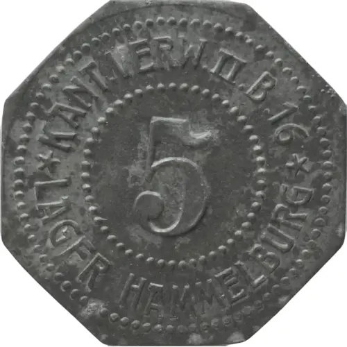| Obverse lettering | KANT. VERW. II. B.16 5 ★ LAGER HAMMELBURG ★ |