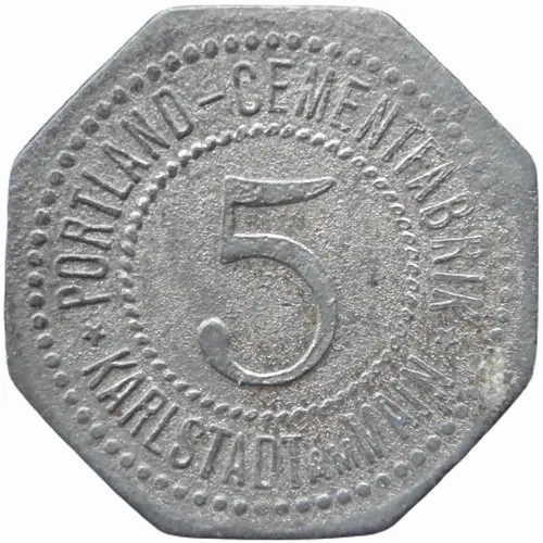 | Obverse lettering | PORTLAND-CEMENTFABRIK 5 ★ KARLSTADT am MAIN ★ |