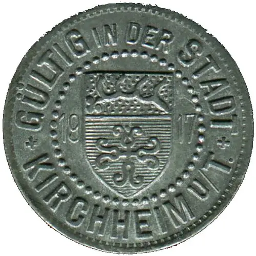 正面铭文 GÜLTIG IN DER STADT 19 17 ✚ KIRCHHEIM U/T. ✚