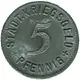 背面铭文 STÄDT.KRIEGSGELD 5 ✚ PFENNIG ✚