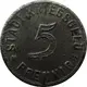 | Reverse lettering | STÄDT.KRIEGSGELD 5 ✚ PFENNIG ✚ |