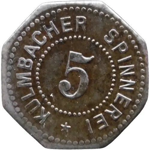 | Obverse lettering | KULMBACHER SPINNEREI 5 ★ |
