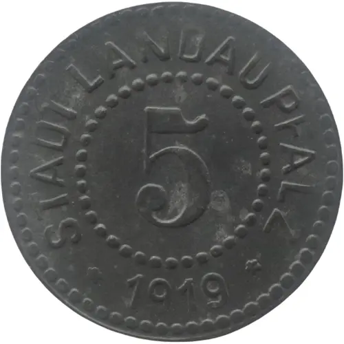 | Obverse lettering | STADT LANDAU PFALZ 5 ★ 1919 ★ |