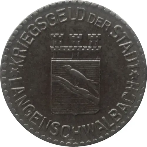 KRIEGSGELD DER STADT ✶ LANGENSCHWALBACH ✶ (Translation: * Wartime money of the Town of * Langenschwalbach) |
